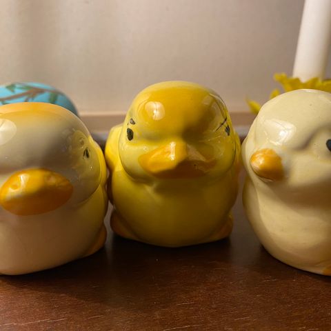 En lille samling påskekyllinger. Fra 70'erne.