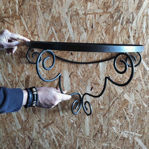 Pænt "udstillingsbord" med 2 sokkelplader (metal) og tre glashylder, Kan skilles ad. Opstilling i trekantet version eller i "ruderformet" version uden hylder over den ene sokkelplade, jvf. billeder. Hyldehøjderne kan frit indstilles. Ingen ridser i glashylderne, men lidt rust på sokkelpladerne, som også er lidt gullige p.g.a. solplacering. De kan dog let males. Størrelse 60 x 60 x 60 cm, højde 90 cm.