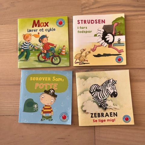 Jeg har taget et billede af første side i en af bøgerne, så man kan se sværhedsgraden