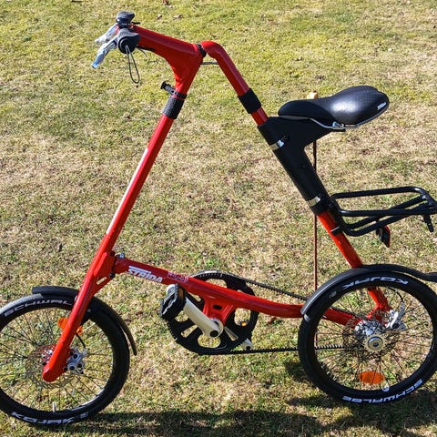 Mobiky Genius 12 Foldecykel, Super smart Mobiky Genius vundet 12 priser aluminium foldecykel med Shimano Nexus 3 gear og skivebremser foran og Nexus Roller Brake bag. KMC rustfri selv smørende kæde. Cyklen kan foldes ud på under 1 minut og har støttefod, smart løftebøjle. prøv at se denne smarte cykel på youtube, cyklen er som ny kun brugt få gange, nypris er kr. 7000,-, Er gratis at tage med i bus, tog og Metro, når den er foldet sammen, hvilket du kan gøre på under 1 min, cyklen har udveksling d.v.s. at du træder som på en alm. cykel og da den er lavet af aluminium er der stort ikke noget der kan ruste Mobiky Genius Folding Bike Demo på youtube. Jeg har 2 cykler den ene blå den anden rød.