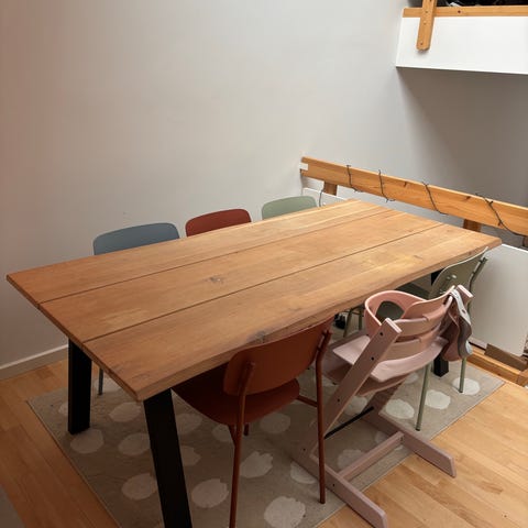 Har kun stået i stuen, ikke brugt da vi også har spisebord i køkkenet.
