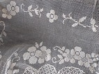 Fint sødt stort hæklet stykke der måler Ca. 250 x 212 cm. 2 endestykker har hæklet blonde kant se billeder. Kan bruges som sengetæppe eller man kan bruge den som dug eller ovenpå en farvet dug. Der er mange muligheder. Der er et mindre hul som man hurtigt kan reparere og en lille plet som ikke er forsøgt fjernet. Derfor den lave pris. Sender gerne men køber betaler selv for en eventuel forsendelse.