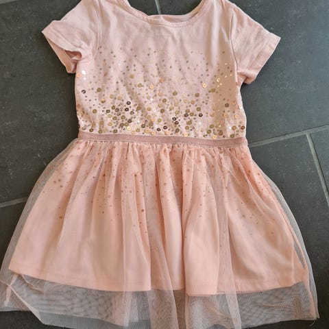 Flot kjole til hverdag eller fest. Str. 98/104. Støvet lilla med et strejf af glimmer og sløjfe fortil. Mærke: H&M.