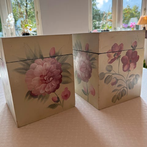 Blomsterkasser med tavle og kridt, 31x15-26x12, Fransk LANDSTIL, nips, patina, nyt og gammelt.