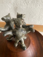 Dansende bjørne i metal , på træsokkel
