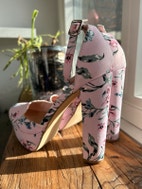 Smukke “Tayla Platform Court” fra JustFab. Lyserøde med blomster, virkelig søde og i rigtig god stand. Se hælenes højde på billederne. Str. 38,5.