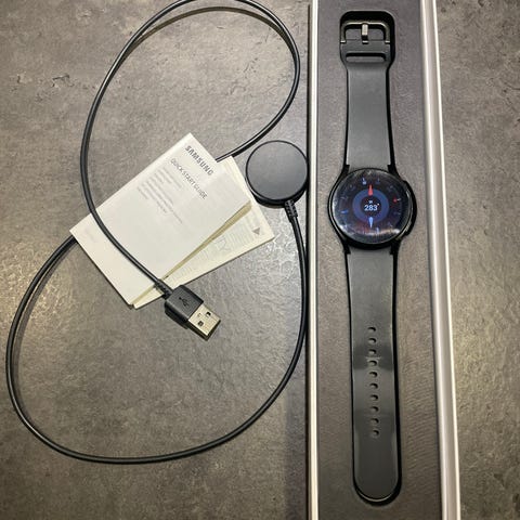 Godt smartwatch i fin stand. Et par ridser på urkant; men glasset er perfekt. 44 mm.
