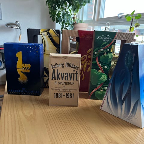 Aalborg akvavit 1993 + Aalborg 100 Aars akvavit begge julesnaps