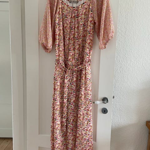 Sød kjole i Broderie anglaise, hvid, rosa, gul.