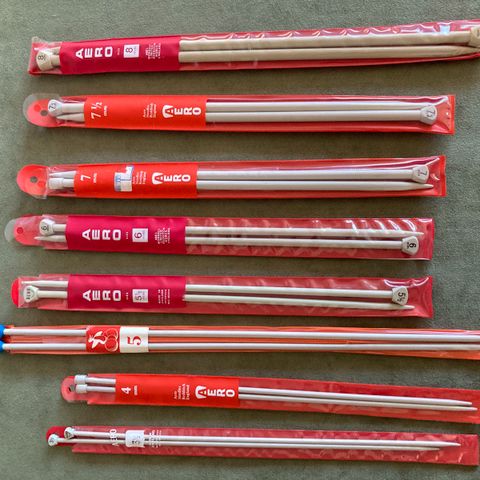 11 x sæt strikkepinde. Aluminium, lette. alle sæt er i pæn stand, brugt minimalt. Prisen er for alle, sælgers kun samlet.fast pris.
