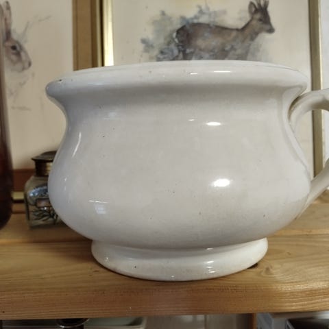 Måler ca 21 cm i dia, øverste kant og er 12 cm høj.