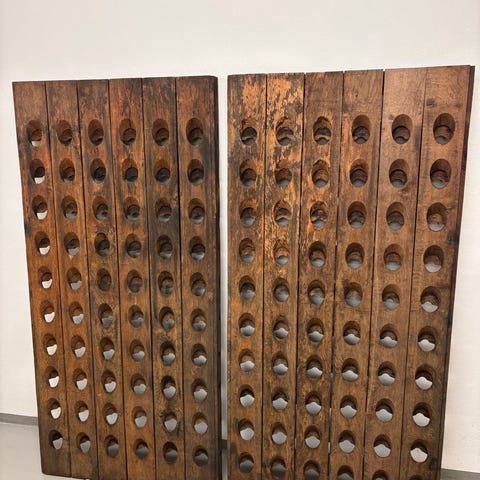 Vintage fransk pupitre i massiv egetræ med plads til 40 flasker.