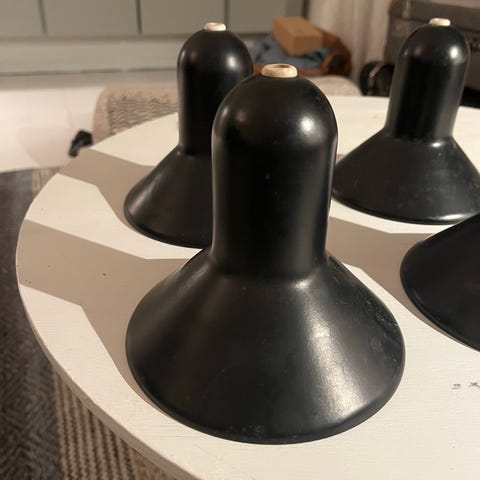 Pendel, BELL, Hvid lakeret metal.5 stk. alle har fået ny ledning, stor porcelæn fatning.god i stand.H14 Ø 14 cm 350 kr pr. stk