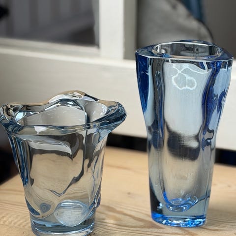 Glas, Vase, Sklo Union, Skøn vase (eller jardiniere) kaldet “Eye bath” Designet af Fratisek Vizner i 1962 for Sklo Uunion, Bömisk glas. Sjældent udbudt
