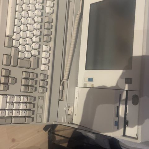 AST PenExec 3/25, 0,004 GB ram, 0,12 GB harddisk, God, Her til salg er verdens første konvertible tablet bærbare computer med dertilhørende pen (sidstnævnte mangler dog). Da maskinen udkom i starten af 90'erne var prisen $3000 eller $5400 i dagens penge (ca. 36.000 kr.), så der var virkelig tale om en niche maskine, som på mange måder var forud for sin tid. Maskinen er oprindeligt købt af min morfar i starten af 90'erne og er således med dansk tastatur. Der er installeret Windows Version 3.1 og det kører og starter ganske fint. Af fejl og mangler kan nævnes at et af hængslerne til skærmen er fraværende(se billede), om end den fungerer ganske fint uden. Derudover mangler pennen som nævnt, men da der er tale om en Wacom type pen, må det være muligt at finde en igen.