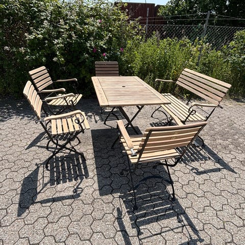Dark Horse havemøbelsæt fra Botium tegnet af Rud Thygesen & Johnny Sørensen, Galvaniseret stel med teaktræ, med sandpapir og olie kan det se ud som billede nr. 2