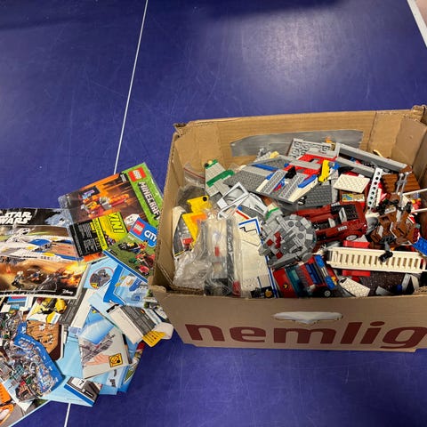 En samling Lego af ca 20 Lego modeller med billed/vejledninger og 3 Starwars og er nogenlunde opdelt i farver og nogle er påbegyndt.