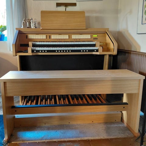 Allertiders Digital AHLBORN Sl100 hjemmeøve orgel, node-holder på toppen, sælges med bænk.