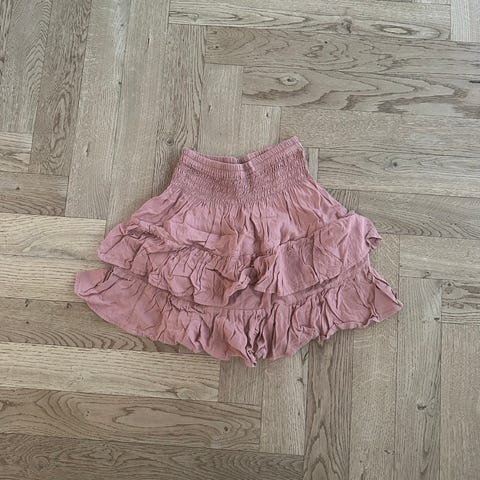 Lyserød nederdel Str. 92. med flæser/ lagdelt design. Mærke: Pretty silk.