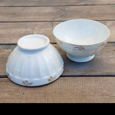 kartoffel fad u låg, skål, sovseskål og 6 ovale fade i forskellige størrelser.