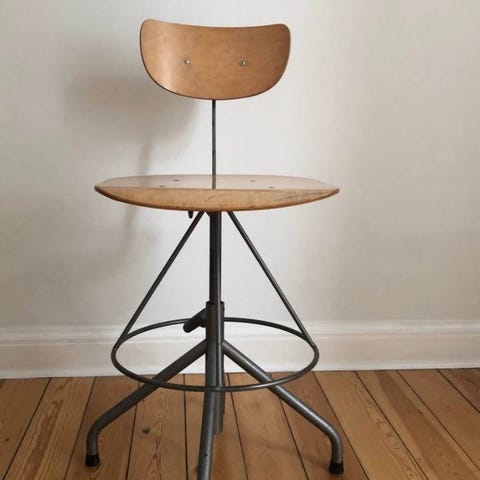 Smuk gammel værkstedsstol med masser af patina. Man kan sagtens stadig sidde på den:-)