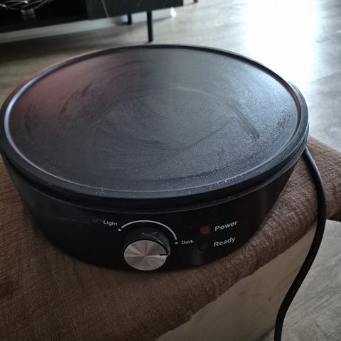 elektrisk pandekage pande med thermostat , 40 cm. diam. har 2 nyt i kasse.