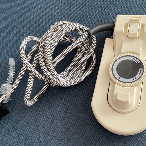 Lille fint rejsestrygejern, brugt få gange, ligger i opbevaringspose. Sælges for kr. 100,00.