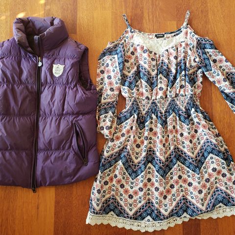 2 sommerjakker, Softshell jakke, Hoodie jakke, Vinterjakke, 3 par lange bukser, 2 par shorts, 4 t-shirts, 3 toppe, kjole, bluse, trøje, vest.