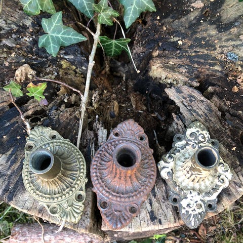 Smukke antikke trompethalse med fin udsmykning til at skjule dørhåndtag og forfine dørgreb og dør