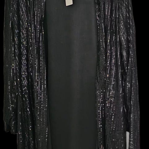 Aldrig brugt palietcardigan i hvid. Str S-L. Passer op til brystmål 106