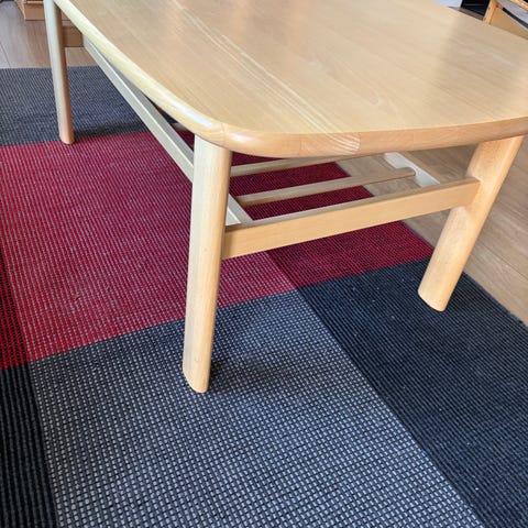 Flot ovalt sofabord i sæbebehandlet, massiv bøg. Med underhylde. Står som ny.