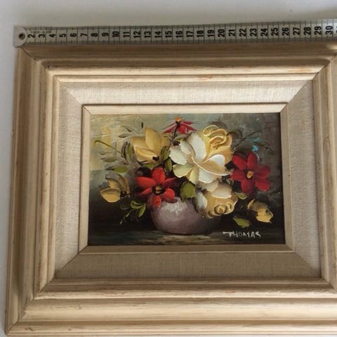 Blomstermaleri. Stort flot oliemaleri, lidt afskalninger, her af prisen.