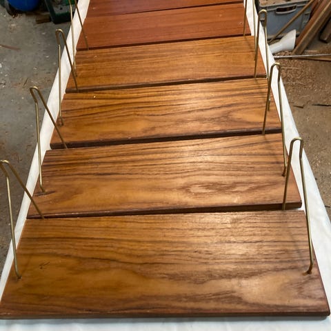 Teak hylder med originale messing beslag Fås i længde 40-50-60-70-80 cm
