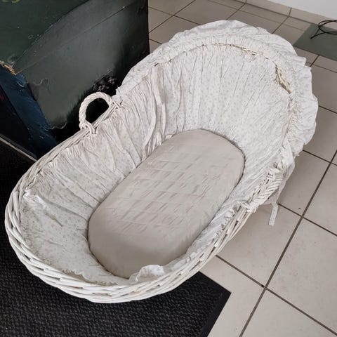 Fin vintage kurve seng. Brugt til opbevaring af tæpper og bamser