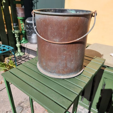 Skjuler, Kobber, Fin kobber skjuler. Hanke i porcelæn er hele og fine.