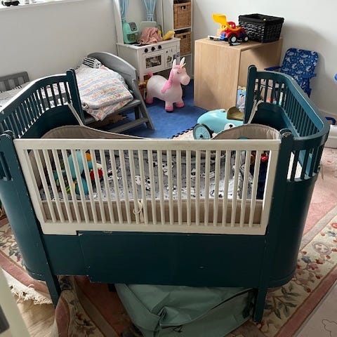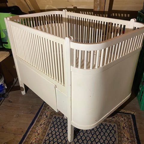 Andet, Original fin Juno seng i støvgrøn. Kan bruges fra 0-7 år. Sider følger med. Madras kan tilkøbes ved interesse
