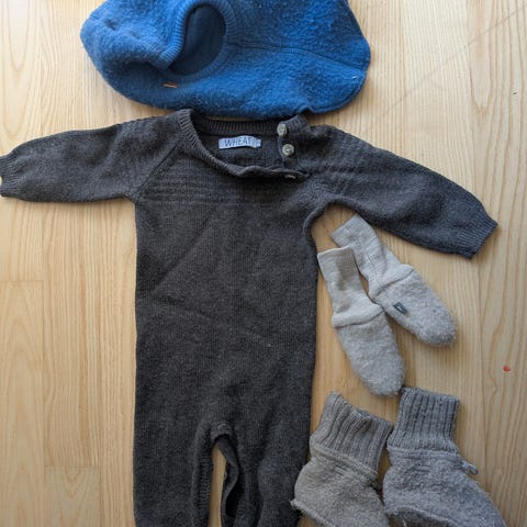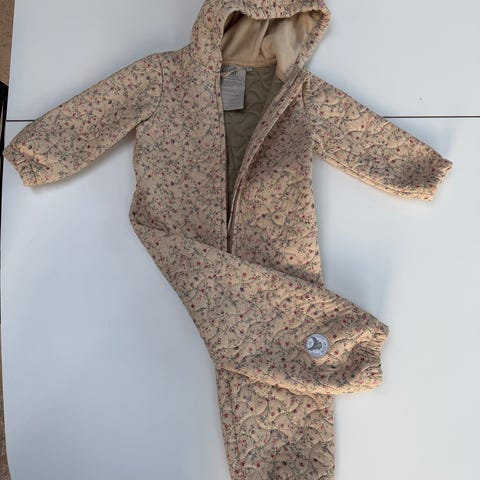 Flot dragt fra Wheat sælges . Den er brugt men stadig i fin stand . . Den er i det sødeste blomsterprint . Den er uden foer men vandafvisende . Den er i str 92 . Den sælges for 75kr