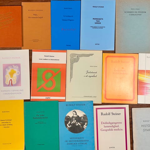 46 bøger af Rudolf Steiner. De fleste på dansk, enkelte på norsk. Se billeder for titler og priser. Sælges gerne samlet eller flere ad gangen. I så fald gives pæn rabat. Den angivne pris er for alle bøgerne (egentli 5510 kr, men 3000 pga mængderabat), men sælger også enkeltvis eller i partier.