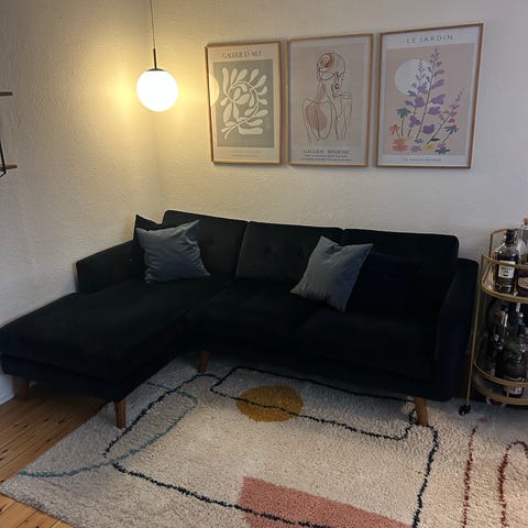 Blå velour sofa sælges billigt