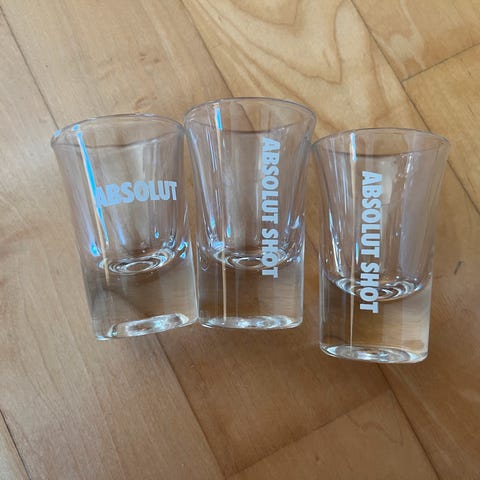 Glas, Shotglas, Sobieski, 2 cl Shotglas til at servere shots, snaps eller likør i. 10 glas i fin stand og uden skår eller andre skader.