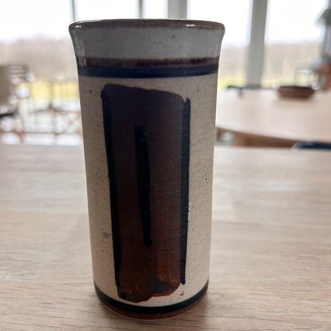 Fin lille skål/stage i glaseret keramik (stentøj) af keramiker Hanne Erlandsen. Dekoreret med gennemsigtige mønstre, så når der fx er et fyrfadslys i, så så lyser mønstreret op.