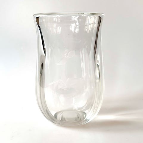 Arne Bang glasvase. Udført hos Holmegaard 1956. Signeret AB. Højde 21cm