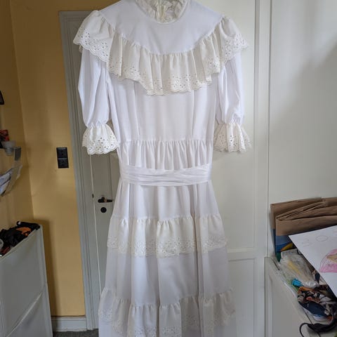 Ny Konfirmationskjole (udstillings model) Str. 36 Knækort med meget tyl og lynlås bagved. Meget pæn stand. (Bemærk den har været en udstillings kjole i butikke, så den har været prøvet på.