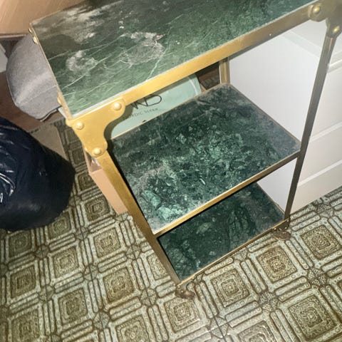 Øverste hylde med malet underside - så det ligner marmor (beklager lysindfald på foto)