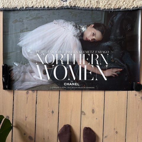 Glasbillede med Chanel parfume og blomster.