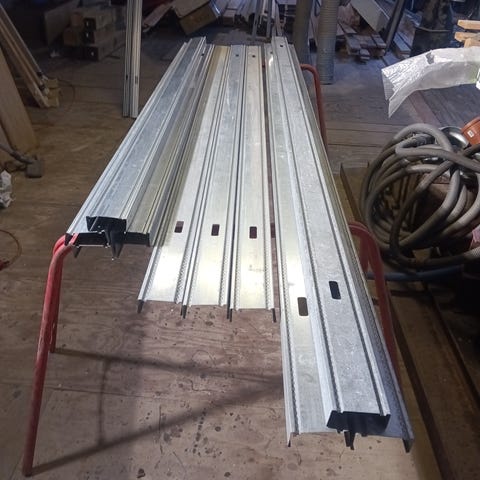 Alle stål skinner er af mærket Gyproc og nye -bruges til at opbygge vægge