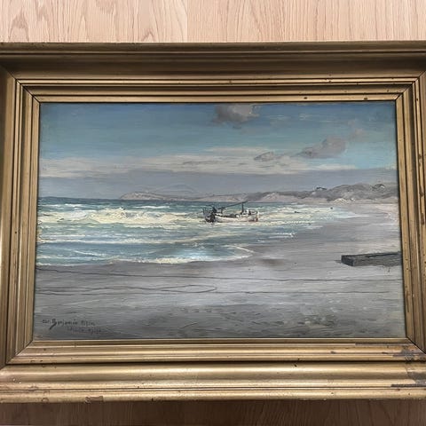 Oliemaleri, Bent Hagedorn Olsen, b: 59 h: 51, Olie på lærred i gylden ramme, signeret lidt utydeligt “Bent Hagedorn Olsen” pæn stand.