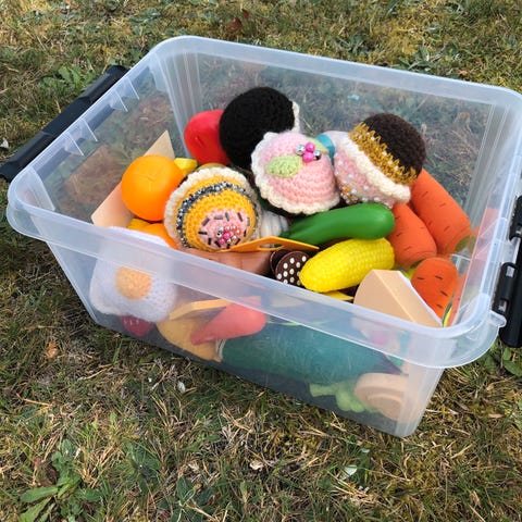 Der medfølger diverse plastikmad, hvoraf noget af det kan skæres over.