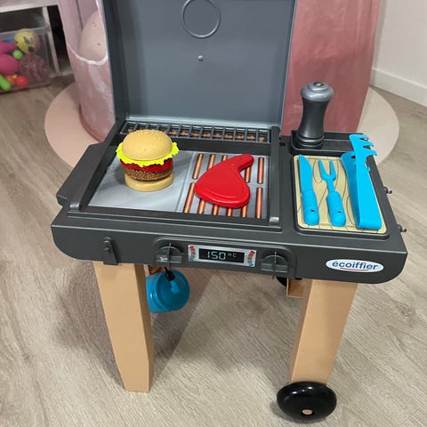 Meget af plastikmaden er fra Ikea. Jeg husker ikke hvilket mærke selve grillen er.