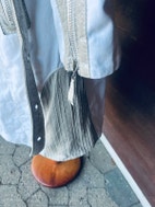 Helt kridhvid jeansstof med skind detaljer i metallic farve.